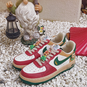 [Custom Cartoon Christmas]  Air Force 1 Skateboard Shoes Women's Low-Top Green [Custom Cartoon Christmas]  Air Force 1 Skateboard Shoes Women's Low-Top Green