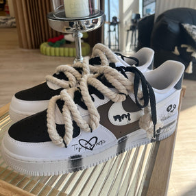 [Custom Female hacker panda]  Air Force 1 Skateboarding Shoes Women's Low-top Black/white/brown [Custom Female hacker panda]  Air Force 1 Skateboarding Shoes Women's Low-top Black/white/brown