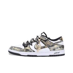 [Custom Gold Rush] Dunk Low Skateboard Shoes Unisex Black/White/Gold