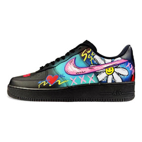 [Custom Men's artist series graffiti black]  Air Force 1 Skateboarding Shoes Men Low-top Black [Custom Men's artist series graffiti black]  Air Force 1 Skateboarding Shoes Men Low-top Black